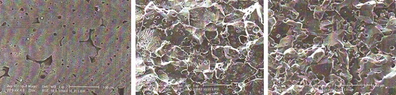 (3) α-Al2O3晶體內含許多5~15μm的圓形封閉氣孔,開口氣孔則較少,一般2-3%;